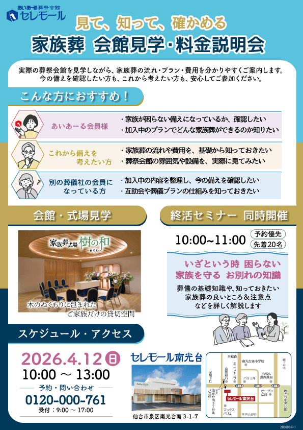 家族葬 会館見学・料金説明会(終活セミナー同時開催)
